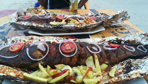 Simple bar with affordable drinks, fish, catfish peppersoup and yam, etc.